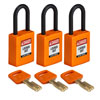 • Nylon padlocks with plastic shackles are lightweight, non-conductive and non-sparking, making them ideal for electrical or general lockout applications