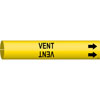 Close-up of someone applying a yellow Brady snap-on pipe marker reading "Non-Potable Water" to a pipe.
